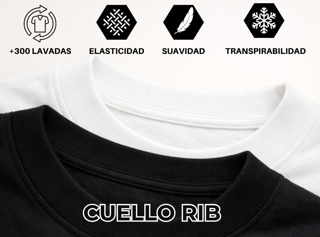 - Rib reforzado en cuello: Mantiene su forma con el uso.